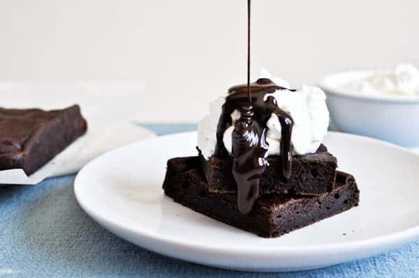 I really liked this cake, but was glad to have the “warning” that’s it’s not very sweet. It’s almost like a dense chocolate bread, with just a bit of sweetness added. The nice thing about this cake is, if you want it sweeter, just serve it with a heaping spoonful of chocolate sauce on top. My boyfriend preferred it that way, where I liked it plain. I found a richer, thicker chocolate sauce on Pinterest, and served it with that one instead. Good recipe, I’ll make this again.