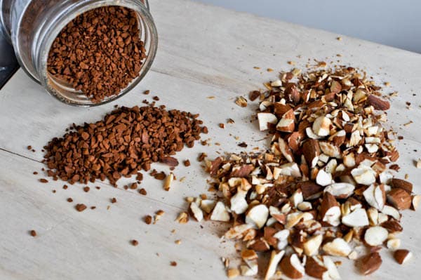 Cream butter, sugar, eggs and vanilla until fluffy. Add flour, cocoa powder, coffee powder, baking soda and salt and mix until combined.