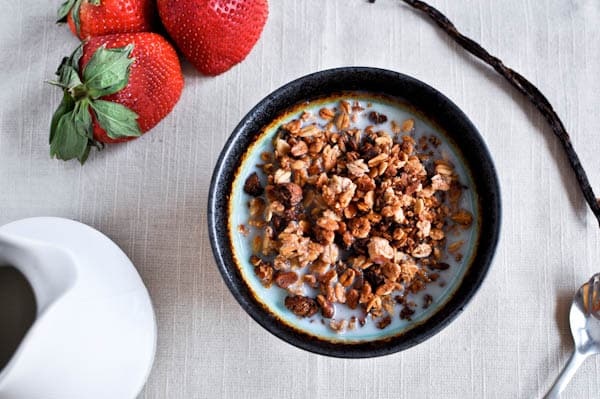 I am a granola freak and this looks perfect. Love how strawberries are back in full season too.