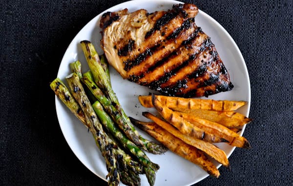 I want your grilled asparagus and sweet tater sticks. PERFECT!