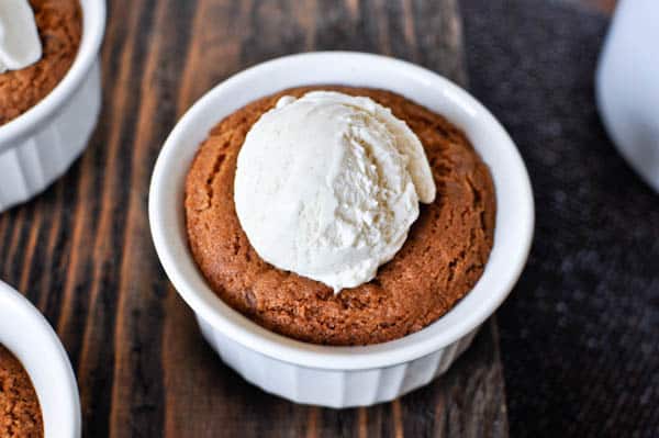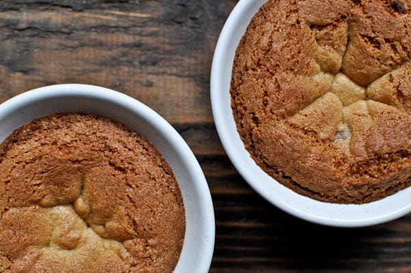 This is one of the best things I’ve ever tasted in my life. I made it for company twice (with all purpose flour) and some of my guests didn’t finish theirs off (WHAT?!?) Anyway… I stood over the sink and finished it for them:) There is NO WAY I am throwing away even a crumb of this liquid gold. The ramekins are magic makers…