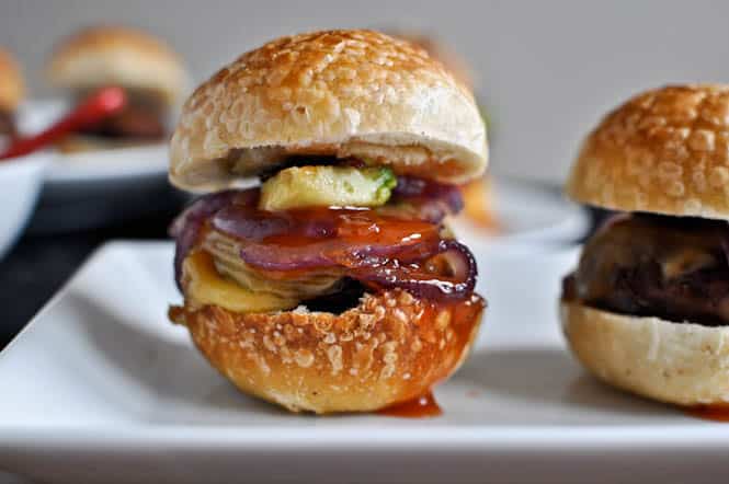 Normally I would tell you that the most ridiculously scrumptious part of these sliders is that gooey gouda rectangle slipping off the top, but not today friends. What sets these babies apart are the mini sourdough rolls that I decided to grab last minute, tossing the whole wheat buns to the side like a big bad stalk of broccoli. Chewy on the outside and soft on the inside, these buns chomped the baby bellas right up just like Pac-man.