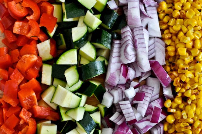 It’s chock full of crispy potatoes and soft, sweet and juicy peppers and onions. Some zucchini is in there too because… it’s summer! Have you heard? And obviously the caramely kernels are the best part because who doesn’t like vegetables that taste like candy?