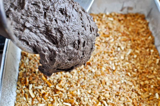 Umm, these definitely took care of my Monday blues. But how do you get your layers so perfect?! I have a giant mess, in my pan. . . luckily, I think I can call them “chocolate pretzel peanut butter swirl brownies” and pretend that’s what they were supposed to look like!