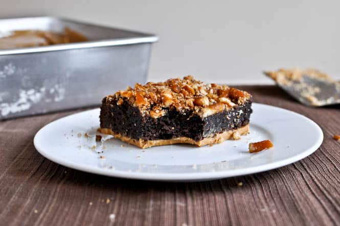 I tried this over the weekend and as much as I wanted to like them, they were just bad! The brownie was mediocre at best, everyone thought the peanut butter layer was way too thick, and the pretzel crumbs didn’t stick at all and I ended up having to press them into the peanut butter on top. Great concept, but they were just messy and bland.