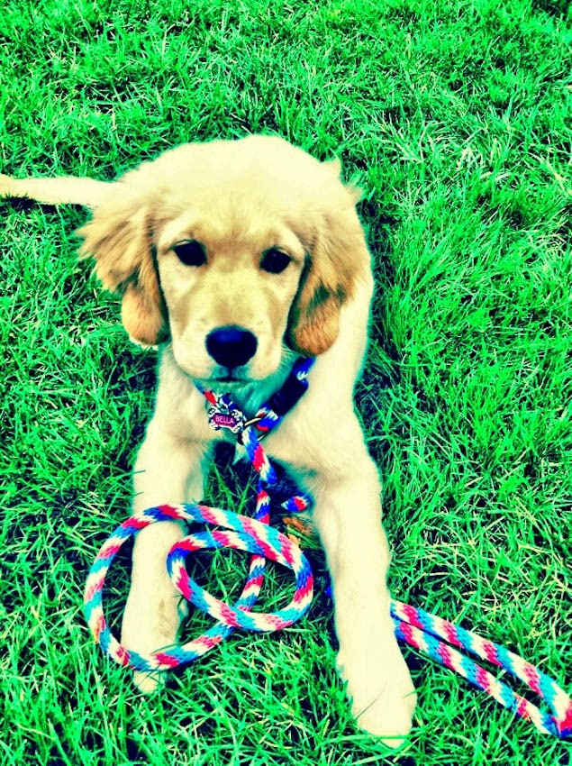 We had to get my golden a horse lead for a leash because he kept chewing through his other ones. The picture of Bella reminds me of that :)