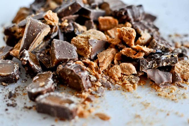 You need to know that this recipe is absolutely fabulous and unbeatable on it’s own. I totally trashed it up with Halloween candy, which adds a fun twist, but is nothing compared to the original. But hey… that’s my style.