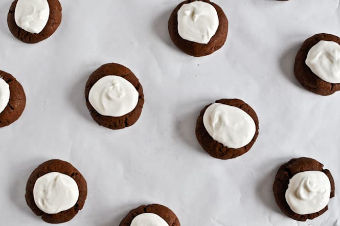- Notes: I used a bit of extra milk (2-3 tablespoons) to thin out my usual marshmallow frosting. If you are making these ahead of time and plan to freeze, I don’t suggest that as the frosting is a bit runnier. If you are making them a day or two in advance, thinning the frosting should be fine.