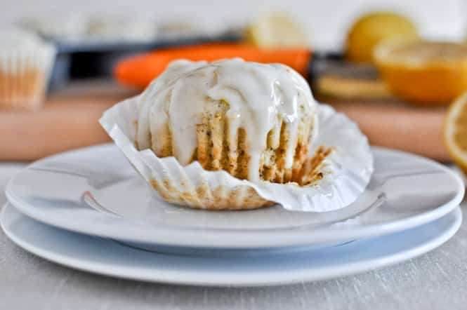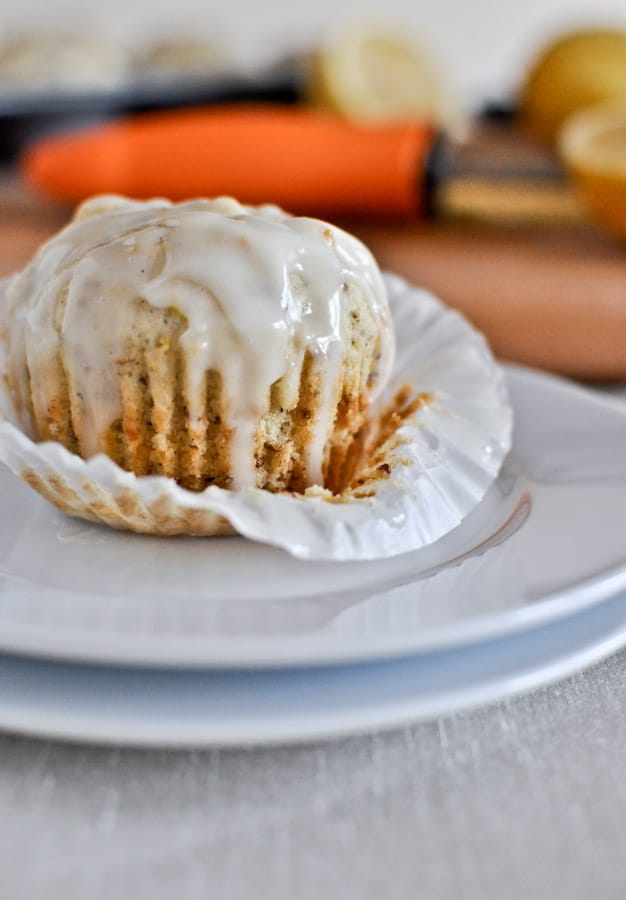 These muffins are the perfect vehicle for transporting delicious holiday breakfasts into your belly. They are slightly sweet, super lemony, dense and fluffy – but still a bit chewy – and even have a twinge of nuttiness happening from the flaxseed. The glaze is so super creamy that is practically melts in your mouth, and I think you might be the most popular kid on the block if you make these for you holiday guests.