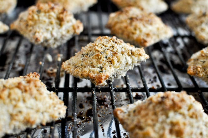 While I’ve made a habit of baking some of my previously favorite fried foods (think chicken fingers, fish sticks and mashed potatoes), ravioli has never made the cut. Which is stupid, because uh… it’s perfect. And now it’s crunchy on the outside, soft and cheesy on the inside.