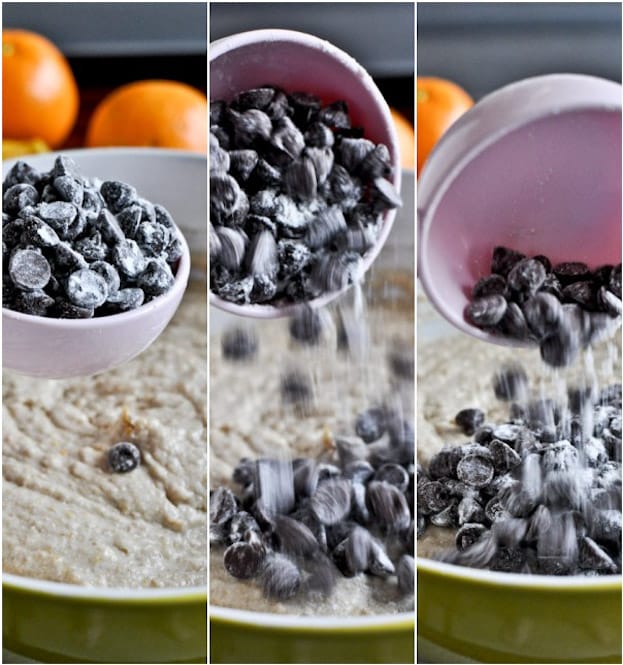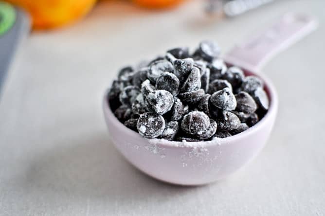 3/4 cup milk chocolate chips, tossed in a bit of flour