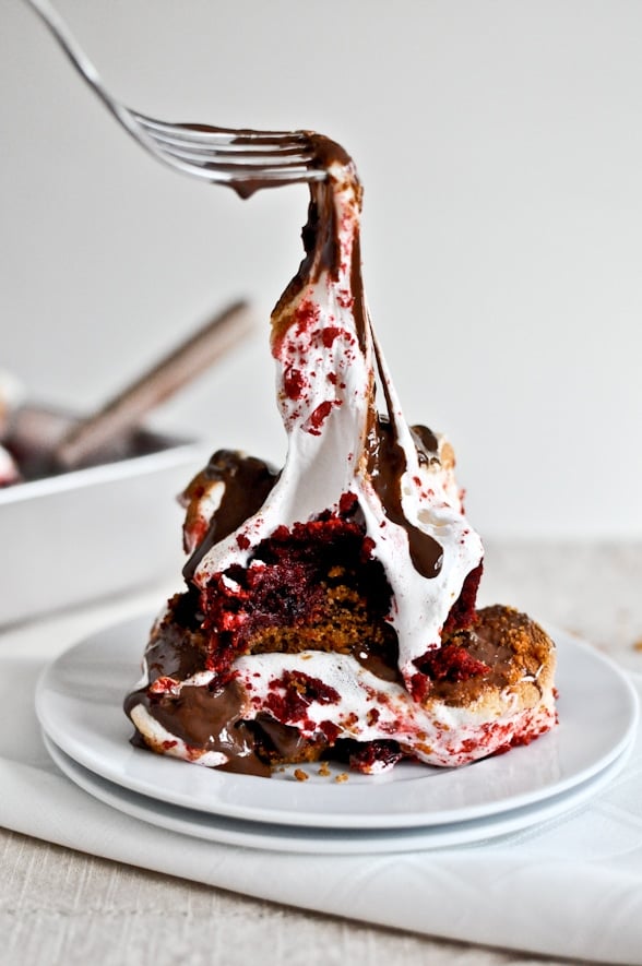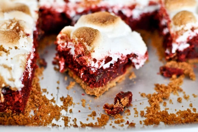 Those smore bars look rediculously decadent and delicious. I love the red velvet addition to the traditional smore. Very creative.