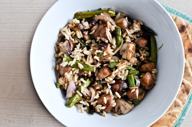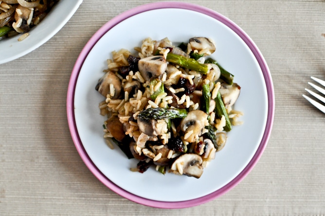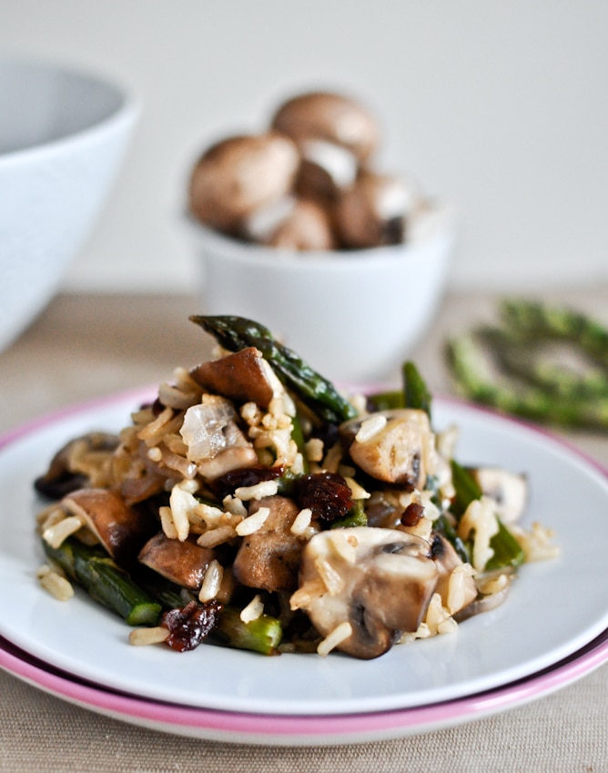 With the exception of the dried cherries, I have all ingredients for this recipe on hand! YES! This looks awesome – I am a regular purchaser of mushrooms and asparagus because I can’t get enough of them – they’re so easy to use in any veggie dish. I love that you roasted the asparagus. The whole thing looks great!