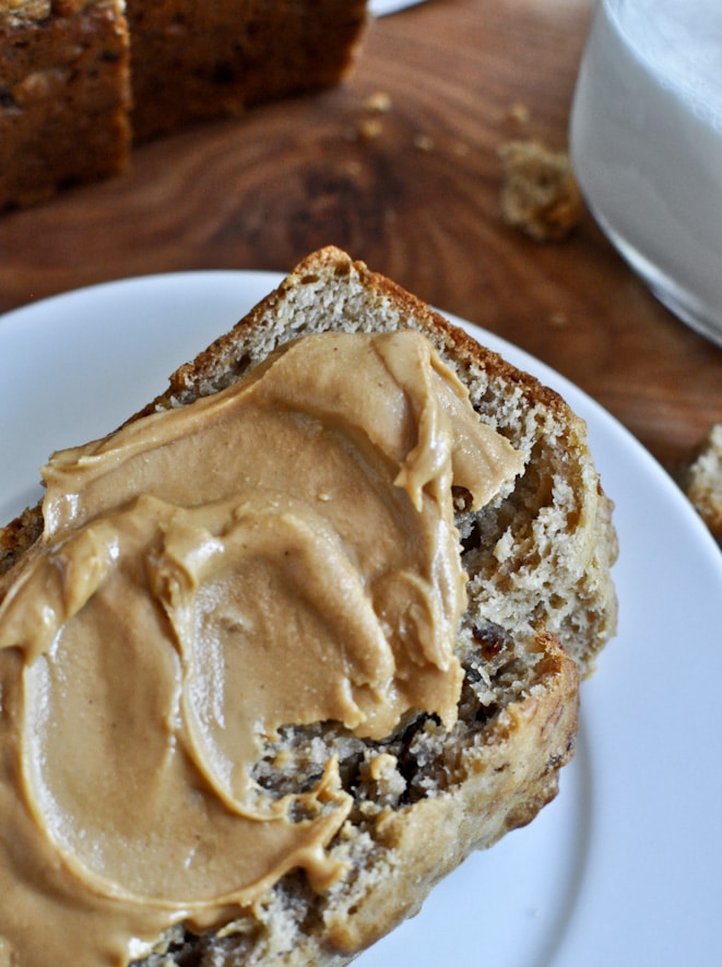 If you want your banana bread super peanut buttery, I highly suggest dropping in some peanut butter chips to up the ante. I chose to leave them out since my snack of choice tends to be a slice covered in a thick layer of peanut butter, and I still wanted the banana and bacon flavors to shine.