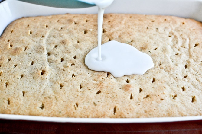 With the mixer on low speed, add in half of the dry ingredients. Add in gin, milk and lime juice, mixing until combined and scraping the bowl if necessary. Add remaining flour and beat until just combined. Pour into a greased 9×13 baking dish, and bake for 35-40 minutes, until top is golden and center is not jiggly. Remove cake from over and immediately poke holes over top with a toothpick or fork. Pour gin glaze over then, then let cake cool completely. While cake is cooling, mix up icing and once cooled, frosted. Note: you can sub tonic water in for the gin/milk portion of the recipe if desired.