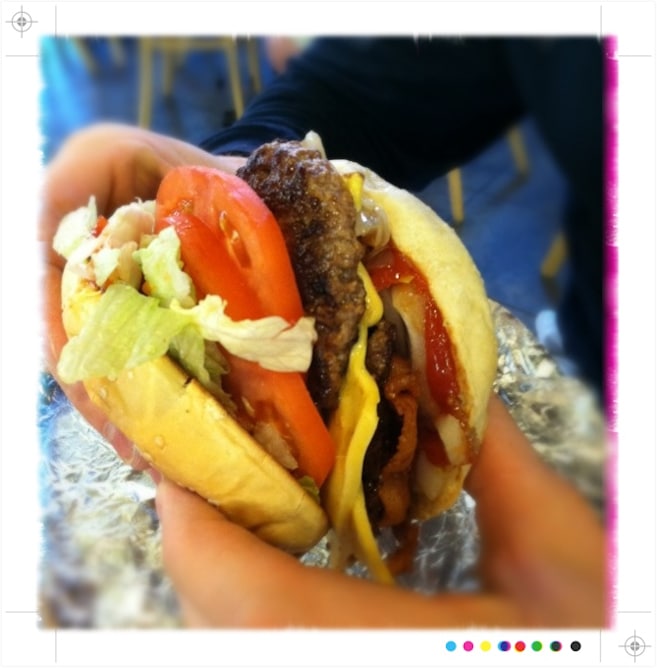 8. Oh after we had those blizzards – which he devoured a LARGE oreo blizzard – and partied all day with party food, Mr. How Sweet decided this is what he wanted for dinner. Double the patties. And the bacon.