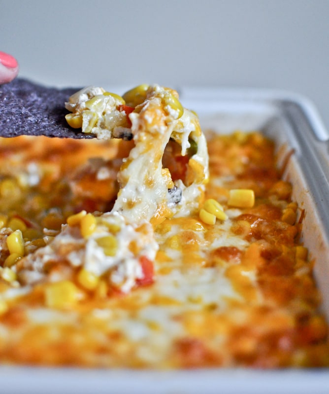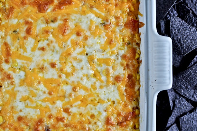 And just so you know? The title of this post does no justice for the flavor of this dip. But because I don’t like to be misleading, probably use waaaay too many exclamation points when typing, well… anything, and am not exactly sure how else to describe a warm dip made with corn and cheese even with the help of a thesaurus, the title shall remain.