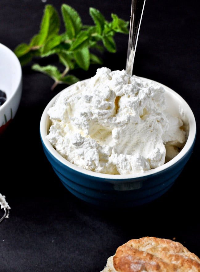 In the bowl of your electric mixer (fitted with a whisk attachment), add heavy cream and mascarpone. Beat on medium high speed until peaks form, about 4-5 minutes. Toss in sugar and vanilla, mixing until just combined. Serve immediately!