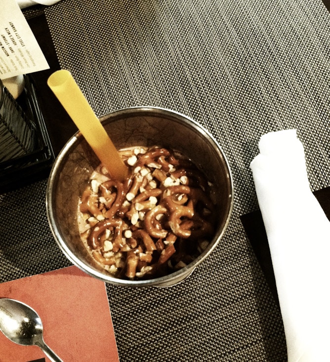 1. Thursday night, after a week of indulging in nightly s’mores, wine, mojitos, tacos at midnight on Wednesday and enormous breakfasts, I went to dinner with one of my great friends and had this SPIKED chocolate covered pretzel milkshake. Clearly, I needed it.