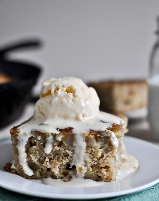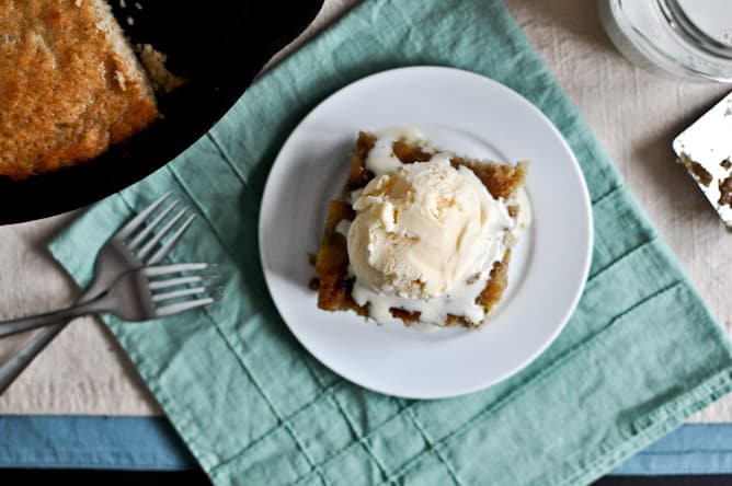 I made this last night in my new cast iron skillet! It was so good and the ice cream sent it over the top! I took almost half of it to the neighbors though, I could not be trusted with the entire skillet. As a result, I’ll probably make another one this weekend:)