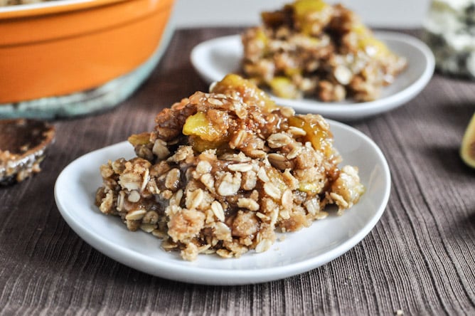 - Add crumbled gorgonzola over figs, then add crisp mixture over top. Bake for 30-35 minutes, or until crisp is golden and fruit is bubbly. Serve immediately, with extra gorgonzola if desired.