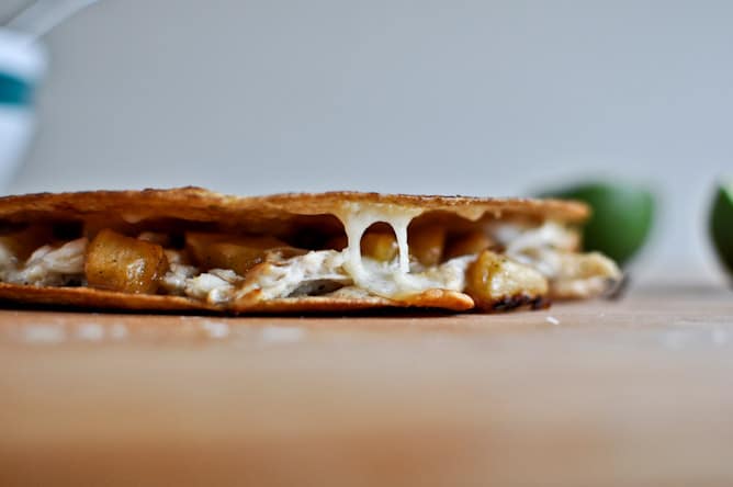 But um, now what I really want to show you: Sunday’s lunch. Caramelized pineapple inside a quesadilla. Caramelized pineapple right in your face. Eh. Exciting right? Built up too much? So delicious you can’t stand it? Wishing it was something more outstanding? Well, whatever. While on vacation, we spied it on a menu but were too tempted by the truffle fries and all-you-can-eat fried fish to order something so gourmet while sitting in our swimsuits unshowered. What did I do? Brought out my phone and typed it in my notes, claiming “OMG I need to make it as soon as I get home,” specifically placing it sandwiched between funfetti marshmallow s’mores and bacon-wrapped roasted chicken, figuring I’d make it in the next few weeks. All about priorities.