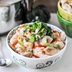 - Serve immediately with green onions, bacon, parsley and cilantro on top – and more sauce if desired!