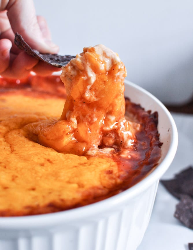 I’m making this dip this weekend for a Halloween party I’m having! Sounds so yummy, and a fun twist from the usual buffalo chicken dip I see everywhere. I’m planning on buying a rotisserie chicken and pulling off the meat so I can use the bones to make stock for soup! Can’t wait to try it.
