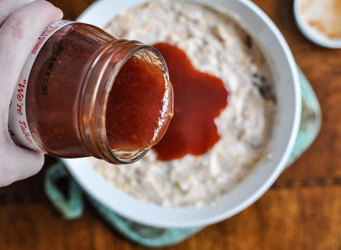 And maybe it’s not that big of a deal, and maybe I’ve been living under a rock all this time by secluding us from this dip with barbecue sauce, but then a reader sent me this recipe right before Labor day and… I freaked out. Because ever since discovering bone suckin’ sauce a few years ago it’s safe to say that I’m a thousand times more obsessed with that than I am with buffalo wing sauce, and the simple thought of the sweet and tangy flavors mixed with cheese and that freaking butter roasted chicken was enough to OMG make me go crazy. Oh and I sort of figured that someone else in this house might enjoy it too. Just a hunch.