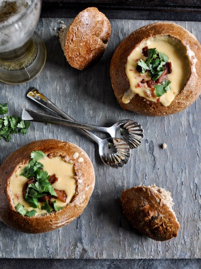 I know it’s sort of hypocritical since I often say that bread is not my drug of choice, but bread bowls? I’m all over them. I will never forget the first time I had one – it was long before Panera showed it’s face… well at least in my area – and it was one summer in Michigan where I found myself scraping spoonfuls of seafood bisque right up along with some soft sourdough loaf.