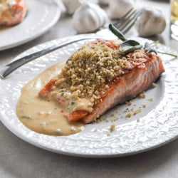134 Comments on “Pan-Crisped Salmon with Light Dijon Cream and Garlic Butter Breadcrumbs.”