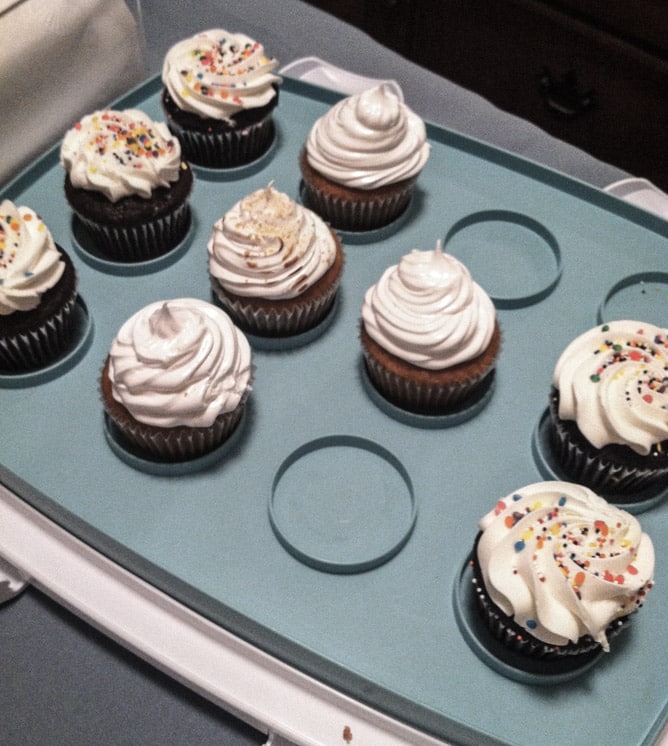 Those tortilla chips are perfect. They look so crispy and light (in the texture sense, not the calorie sense). And do those cupcakes have meringue frosting? Uh, YUM!