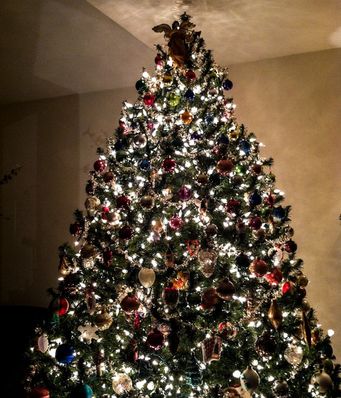 I love your tree – was thinking how awesome it was until . . . I saw those shoes. And they totally eclipsed the tree! I think I would have just added a light and maybe an ornament or something and sat around those shoes. :-)