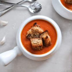 Creamy Tomato Soup with Brown Butter Garlic Croutons