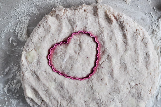 Very beautiful. I love the idea of heart shaped scones. Scones are my specialty, so this is of great interest. One thing though…I have never been a big fan of “glazed” scones, so would not use the frosting, but just do an egg wash and sprinkle with red sugar before baking. I love the crunchiness of the top when they are baked with the sugar on top. It adds just the right amount of sweetness.