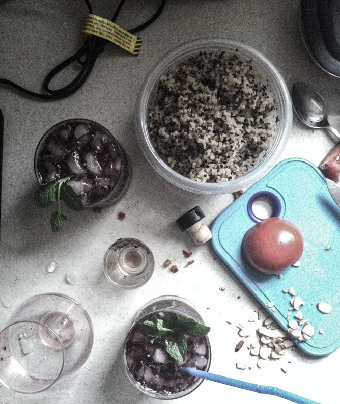 1. The above is an embarrassing shot of my counter last night after a day of developing six recipes. No… none of those things went together. Like… none of them. Except for the beverage and straw…