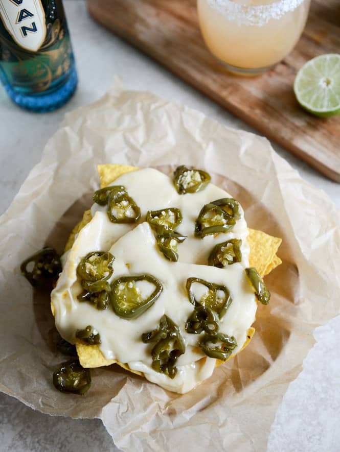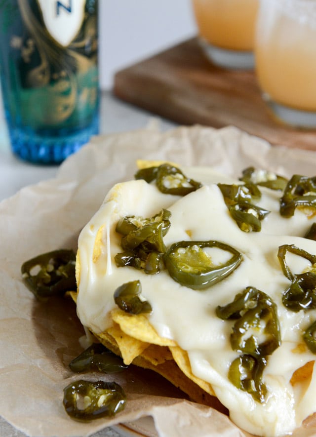 Easy Movie Nachos with Fontina Queso + Candied Jalapeños