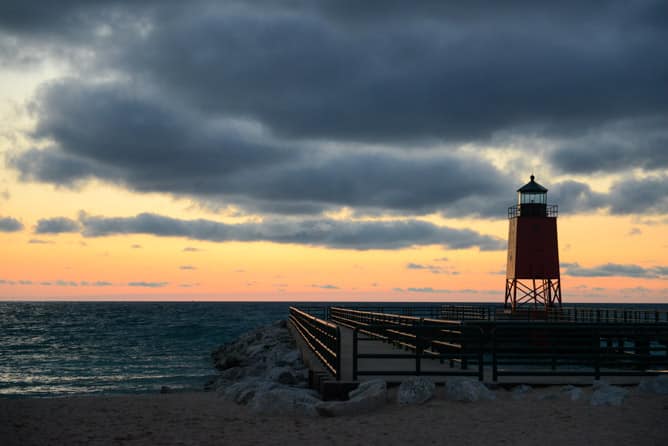 Is this the Charlevoix lighthouse and beach?!? Swing on those swings every.single.summer. Michigan is my happy place!