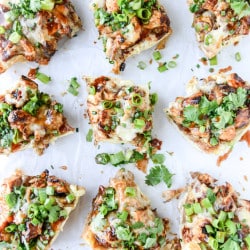 I have no words for how delicious these bbq chicken french breads pieces look, i mean, I hope a serving size is about 10 of them. What is it about French bread that makes it so good with pizza-esque recipes like this? The crunch?! must be.