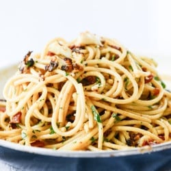While this version is a teensy more high maintenance since you have to wait for the cauliflower to roast, it’s totally worth it if you have the time. The cauliflower adds that slightly sweet and charred roasted flavor, increasing the flavor power of the entire dish and, frankly, adds a vegetable other than parsley to the skillet which means it… can… be… good for us!