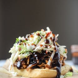 That BBQ sauce. How does one resist putting that on everything? And the slaw. I mean, this is one tasty (and wonderfully messy) looking sandwich!