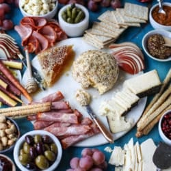 I hope this serves as some cheesy inspiration for your big meal. The cheeseball is fantastic in itself and doesn’t necessarily need all these snacks around it to shine. You could do the cheeseball and a few crackers and be good to go.
