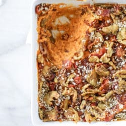 Do you SEE that?! It’s a savory sweet potato casserole!