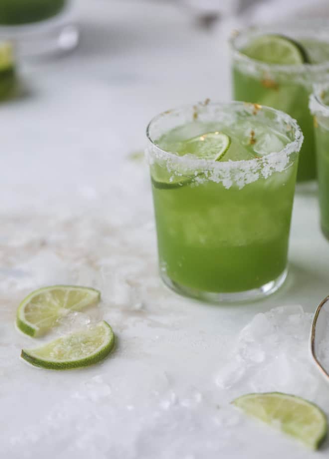 They are super fun. They are SO refreshing. They taste amazing with lots of salt on the rim. And just how perfect are they for Saint Patrick’s Day?! This is a billion times better than green beer.