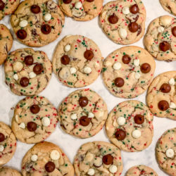 Brown Butter, Pistachio and Chocolate Chunk Shortbread Cookies.