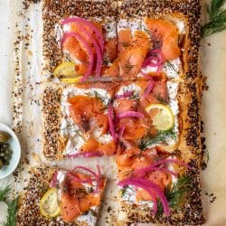 Which is what I really love about this one and why you should make it in the first place. What would you put on a smoked salmon bagel? Put it on here! What would you leave off? Don’t add it. Make it yours, throw whatever you’d like on top, add something equally as delicious.