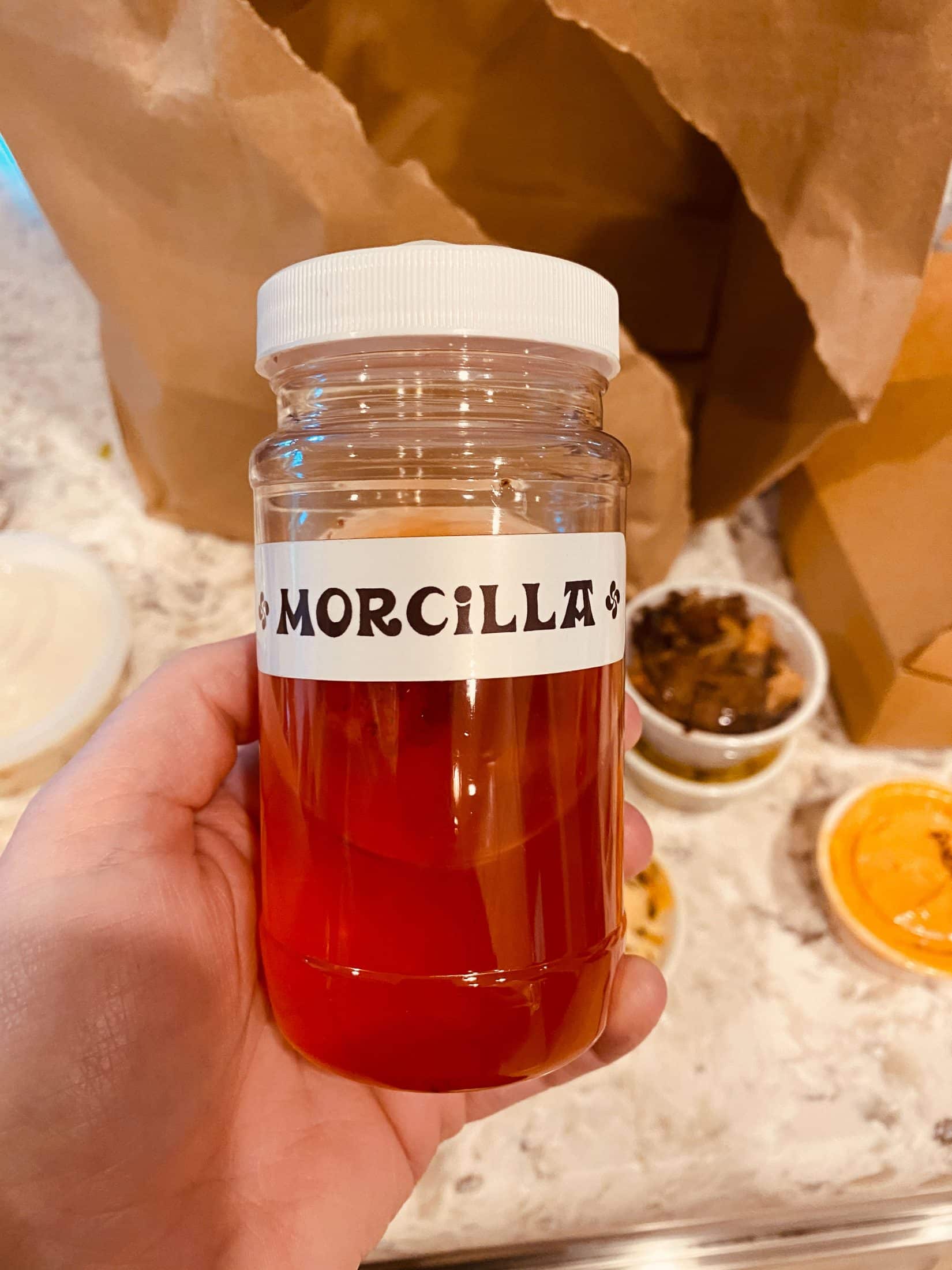 We got morcilla to go! Strawberry aperol for a friday night cocktail.