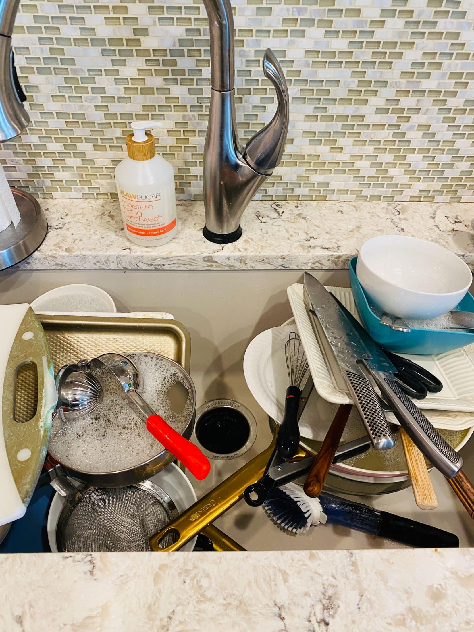 This is a sink after a day full of recipe testing. Waiting for the dishwasher.