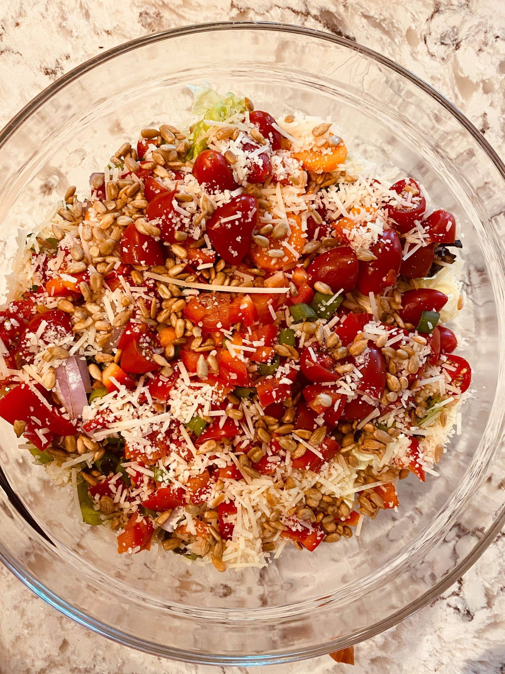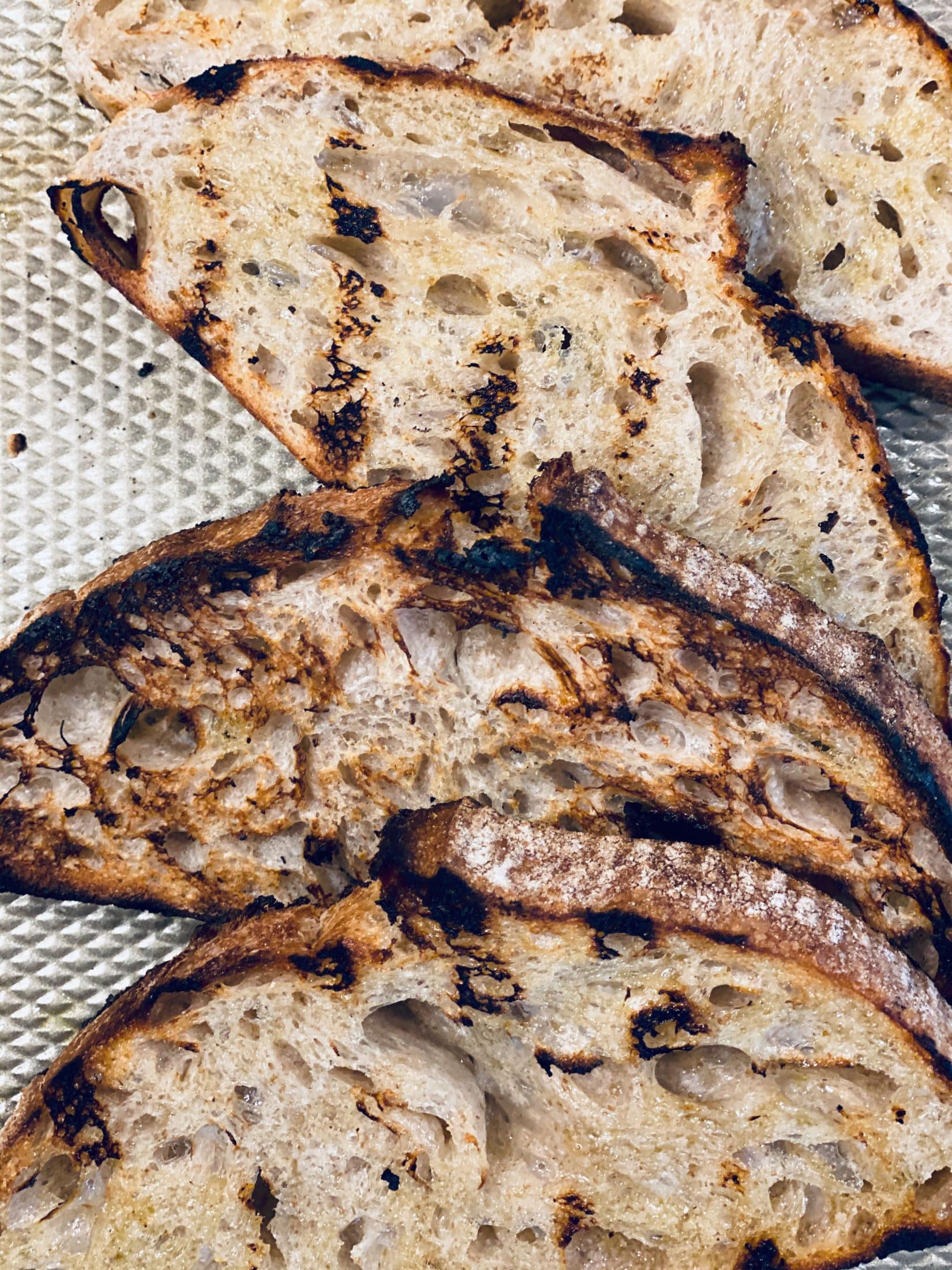 And grilled sourdough! I also made Eddie steak, then smashed potatoes, another house salad (of course) and balsamic + tomatoes for dinner. Yummmm.