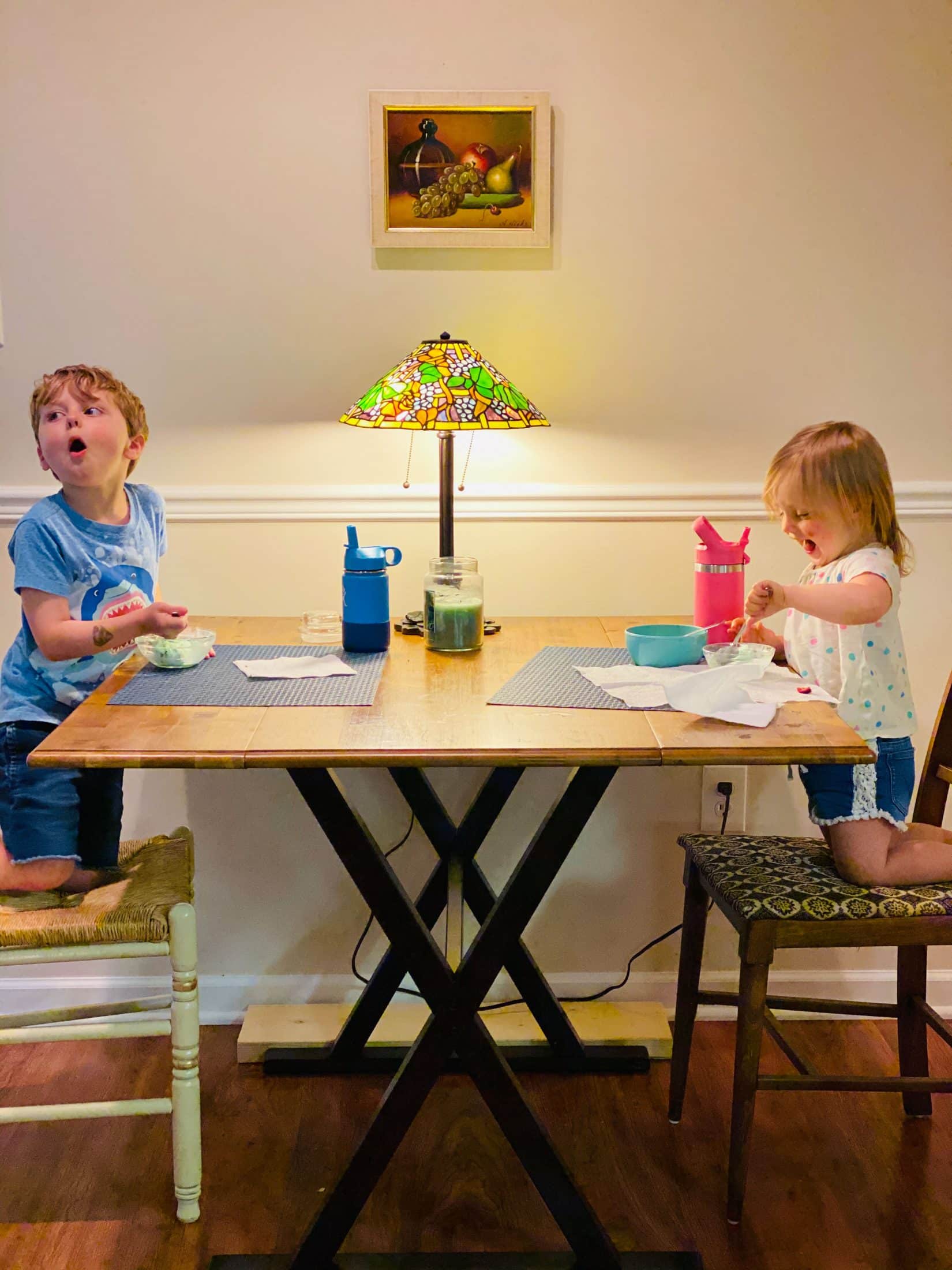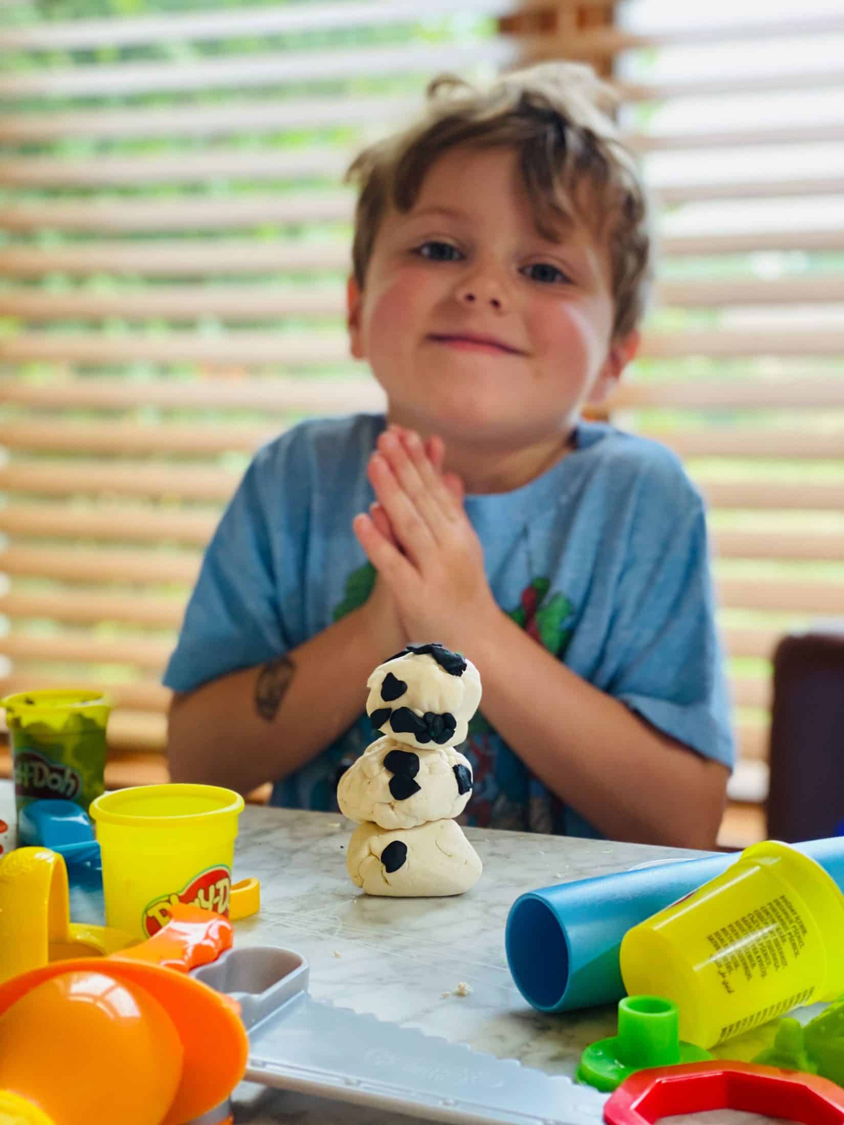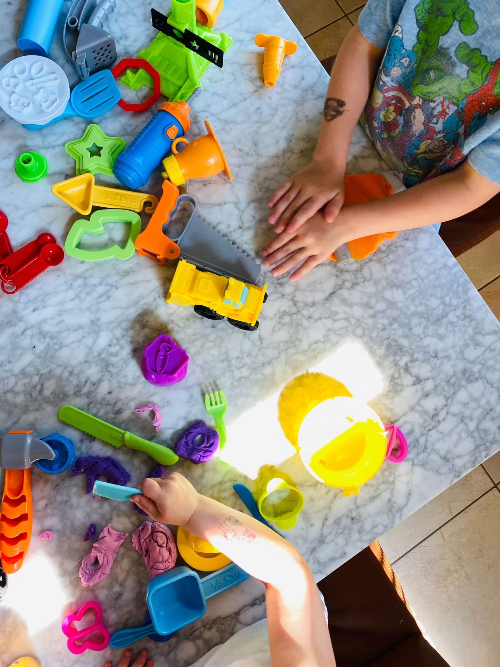 Playdough time. Now I just love their little tattoos on their arms.